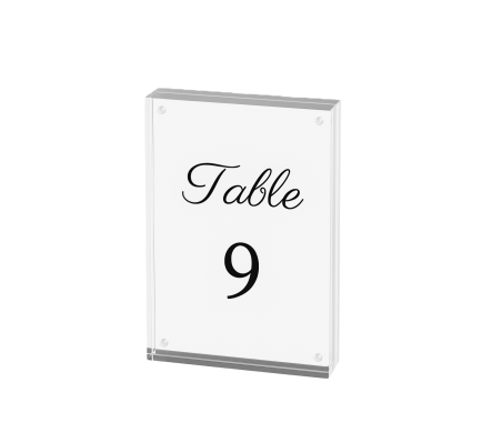 Sleek, modern, and effortlessly functional – our Clear Magnetic Table Number adds a sophisticated touch to any table setting. Designed with clean lines and a minimalist aesthetic, this clear acrylic frame allows your table numbers or signage to appear as if they’re floating, ensuring a seamless look that complements any event style.