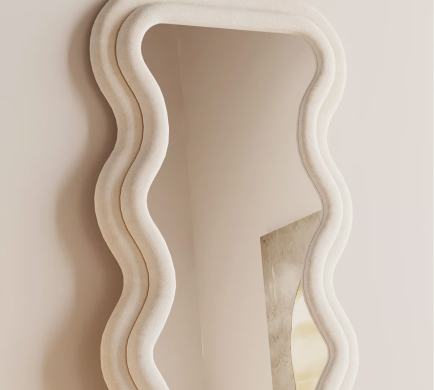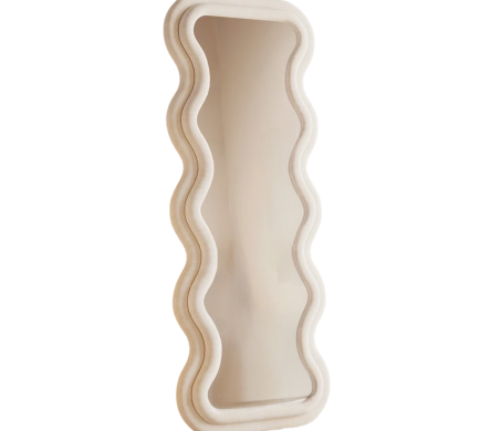 Add a striking yet serene focal point to your celebration with our Velvet Wave Mirror rental. This full-length statement piece features a sculptural wavy frame wrapped in plush velvet and finished with soft cushioning. Its gentle curves and velvety texture bring a sense of calm and sophistication to any event design, making it perfect for weddings, private parties, fashion shows, and styled photo shoots.